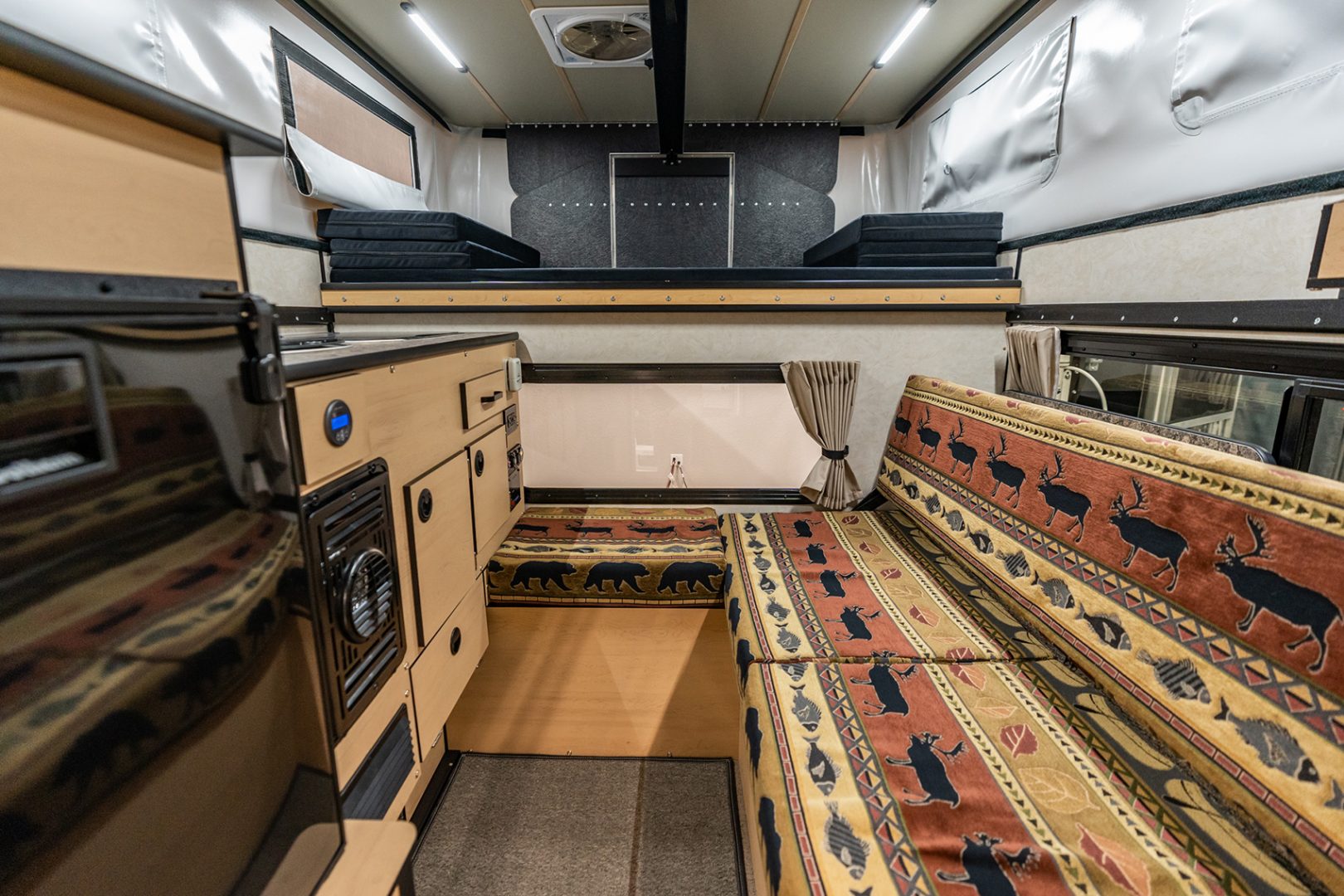 Aufgrund der kürzeren Gesamtlänge wird die Badger ausschließlich mit einem Rollover-Couch-Grundriss angeboten. Eine Vielzahl von Optionen steht zur Verfügung, darunter Markisen, Außenduschen und verschiedene Farben, um Deinen Four Wheel Camper ganz nach Deinen individuellen Vorstellungen zu gestalten.
