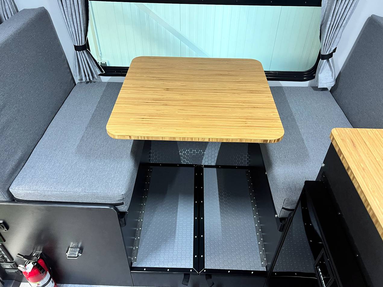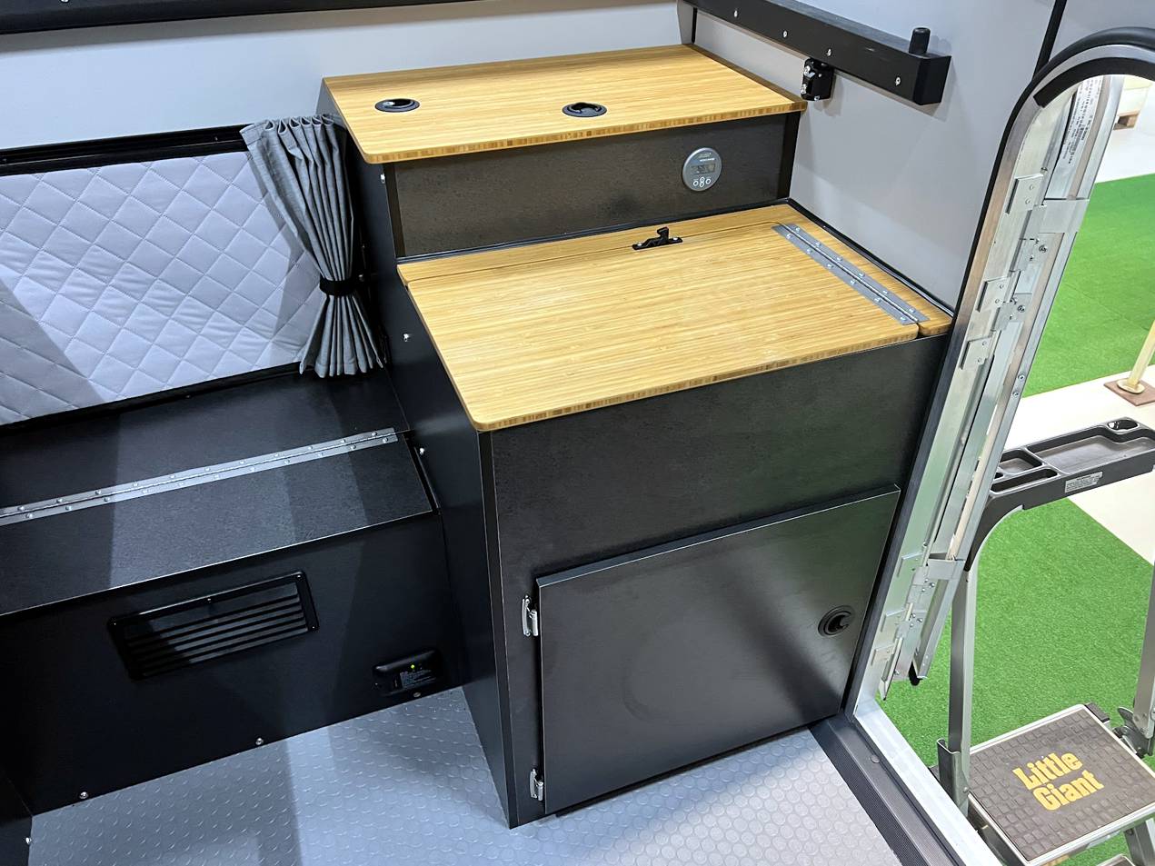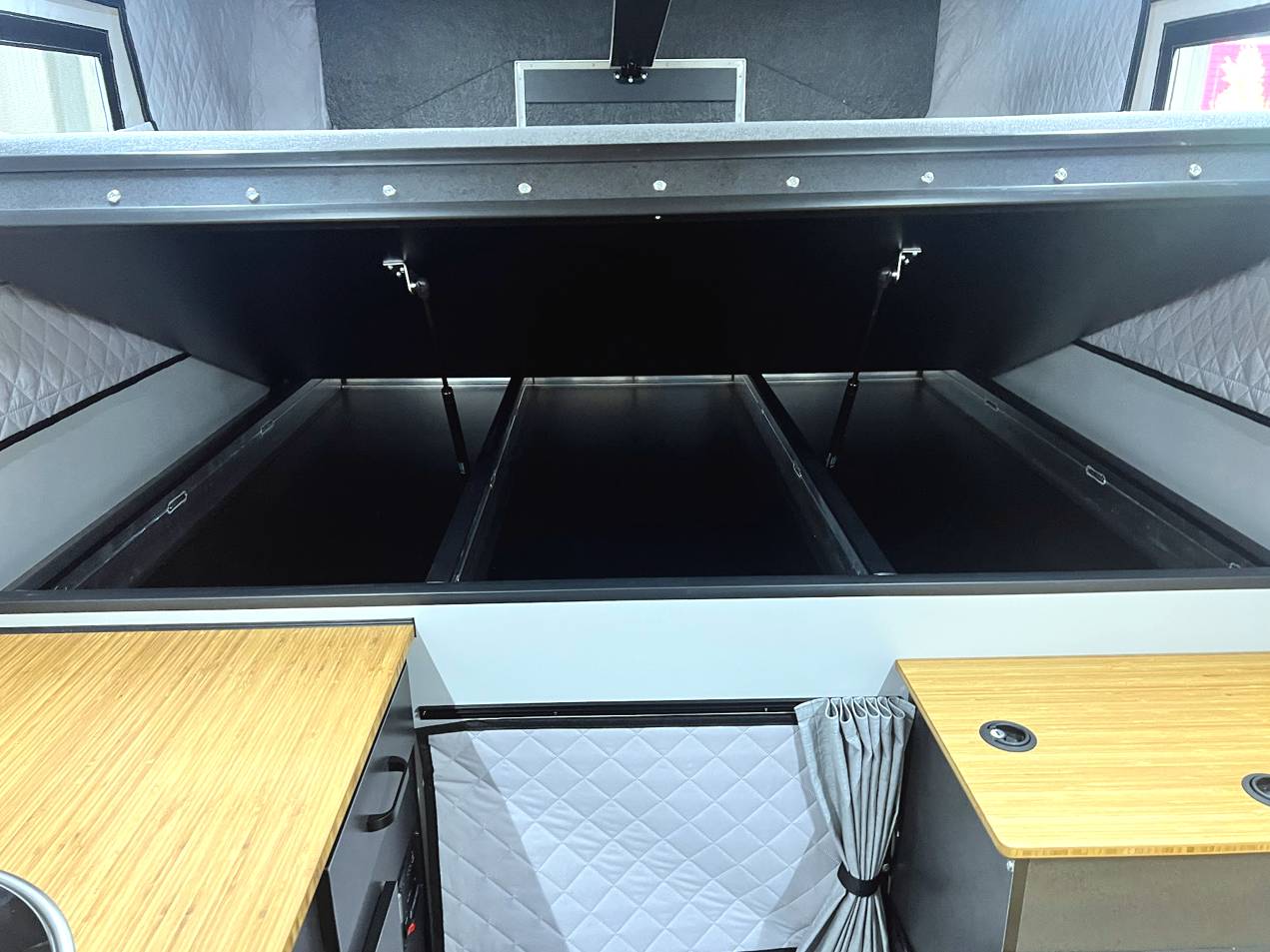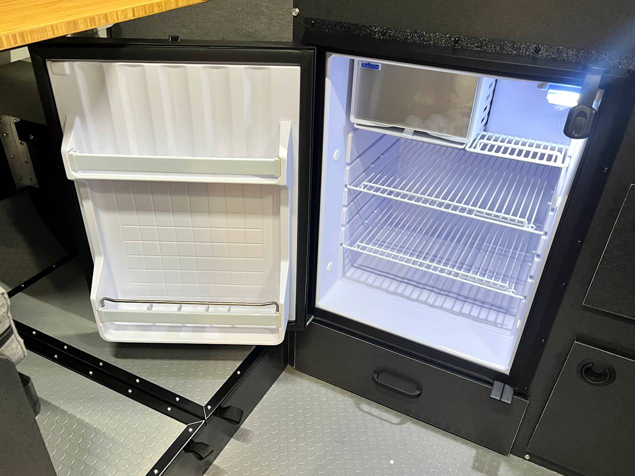 Für die Lagerung von Getränken und Vorräten steht ein geräumiger 65-Liter-Kompressorkühlschrank zur Verfügung. Große Staufächer und Schubladen runden das Bild ab, indem sie ausreichend Platz für alles bieten, was du unterwegs benötigst. Hier wird das Kochen zum Abenteuer und der Küchenbereich zu einem funktionalen Highlight!
